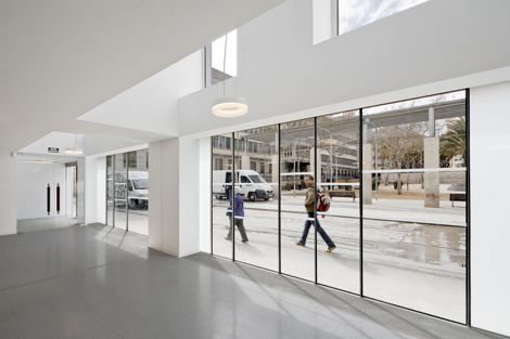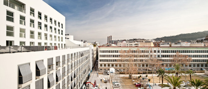 El lugar fue un baluarte y una puerta de la tercera muralla de Barcelona. Después se convirtió en un hospital, una prisión, una plaza y una piscina. El solar es ahora una puerta habitada entre el Eixample y el Raval. El proyecto media entre ambos, entre el pasado y el presente, entre la artesanía y la tecnología.