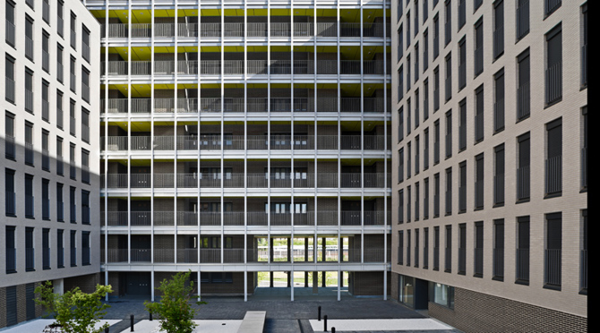 La economía, obligada en vivienda social, está relacionada con la repetición. El sistema tipológico y constructivo de este proyecto es, por ello, extraordinariamente seriado. El proyecto se compone de un conjunto de bloques pragmáticos, eficaces e higiénicos, que configuran espacios semiabiertos y protegidos. Así, un jardín central es el corazón del proyecto, aunque está parcialmente abierto al exterior enriqueciéndose con vistas lejanas.
