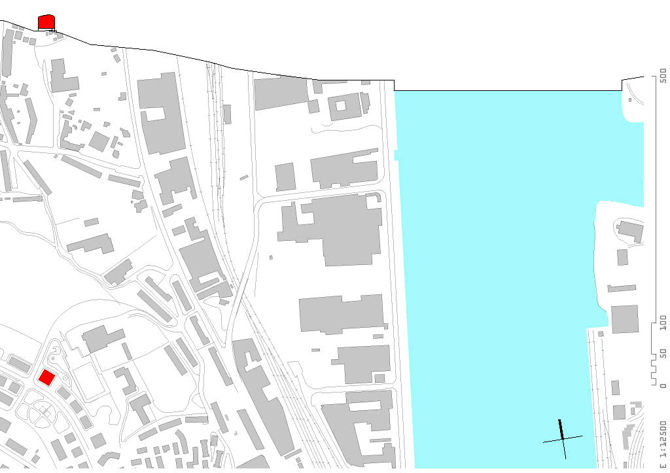 La posición de la edificación, elevada y dominante, sobre un paisaje de “verdes praderas asturianas”, construye el espacio público y privado de estas 22 viviendas y enmarca en la distancia el mar de cubiertas industriales que antecede a la ría de Avilés. La fuerte pendiente de la parcela permite distribuir adecuadamente los programas de trasteros y garajes en planta -1 y -2 construyendo una topografía propia que se entrega a la ciudad. Sobre este paisaje verde la edificación se define como objeto para ser visto.