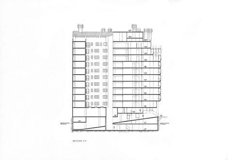 Se solicitaba un cierto número de viviendas, con una superficie útil que oscilase entre los 100 m2 y los 125 m2. Esto, dada la forma irregular del solar, obligó a una distribución en planta tipo de viviendas con un patio central y dos núcleos independientes de escaleras y ascensores,