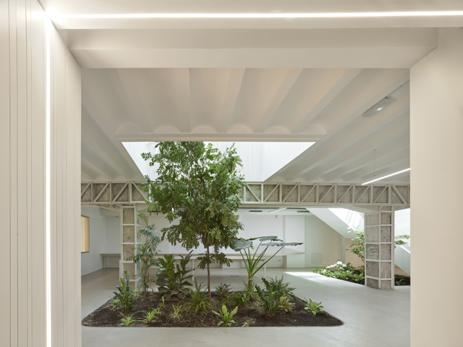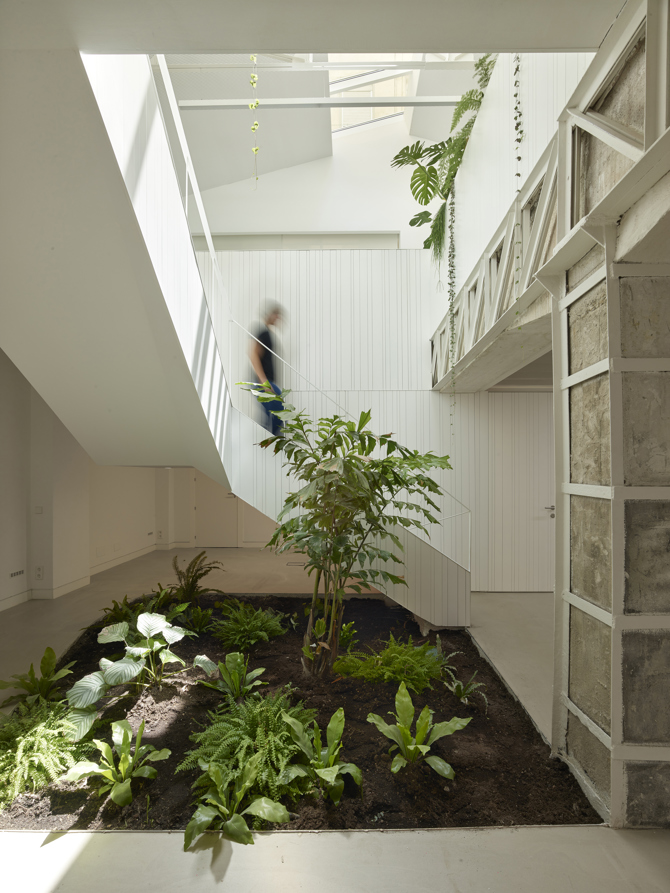 Uno de esos lugares se encuentra en el centro de Madrid, en el patio de un edificio histórico de 1859. Originalmente un precioso lavador, acabó como la ruina abandonada de un taller de coches: degradado, húmedo y sin luz natural.