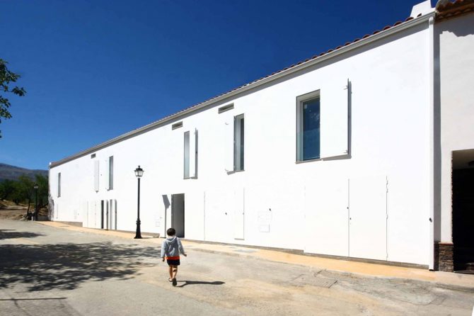La casa es un espacio de transición entre la calle y el patio, de 6,50 m de profundidad media, entre noreste y suroeste. Las estancias miran al sur, a la silueta dibujada por los tres morrones de más de 2.300 m, y evitan miradas cruzadas entre ellas y de las viviendas adyacentes.
