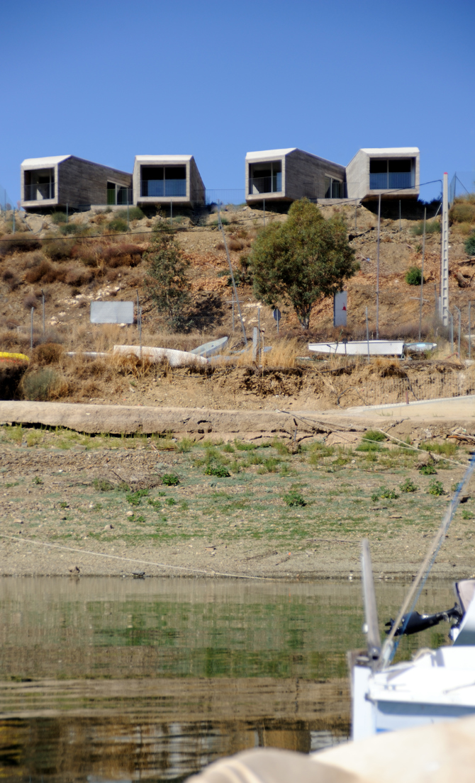 El lugar plantea una posibilidad única y maravillosa: construir en lo alto de una colina frente a la superficie de agua que confina el extenso pantano de Orellana. La propuesta parte de intentar conceptualizar diversas sensaciones, actitudes y acciones sobre las tipologías que dimanen del proyecto. Construir conceptos ligados al lugar y su implantación que podemos resumir en tres acciones: mirar, ver y contemplar.