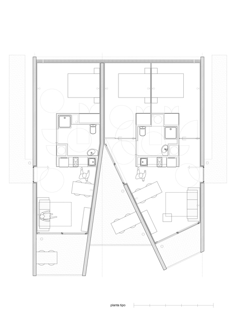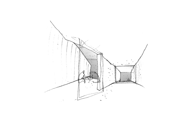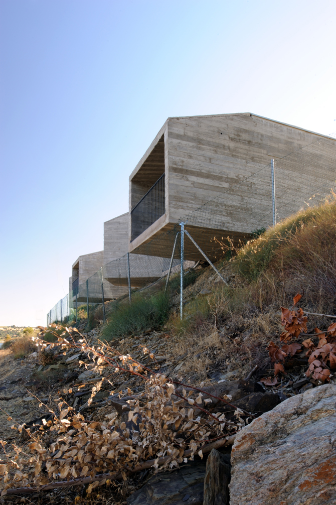 Con estos precedentes se idean unas piezas habitables que, con un carácter de ocupación temporal, vuelcan todo su espacio interior hacia el horizonte. Es, en definitiva, el modo de habitar el que determina la forma sólida y contundente, de hormigón, que envuelve el espacio y lo focaliza hacia un único hueco que se pliega y se asoma sobre la colina. Como lo hizo Libera en Capri, introducimos la ventana como generador del espacio para que el paisaje (mirar), la luz (ver) y el tiempo (contemplar) sean los protagonistas.