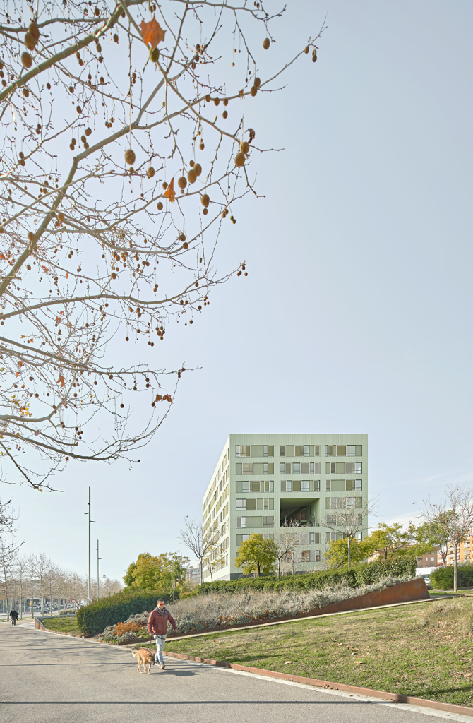 El edificio Caracol es una invitación a repensar el concepto de periferia. Si estamos a una distancia equivalente en bicicleta del centro histórico, de las huertas del Llobregat, de la playa y del aeropuerto del Prat, quizás un contexto en el que se confunden los bloques residenciales y las naves industriales resulta disponer de una condición central accesible a una variedad de contextos y escalas que no se tienen desde el centro convencional.
