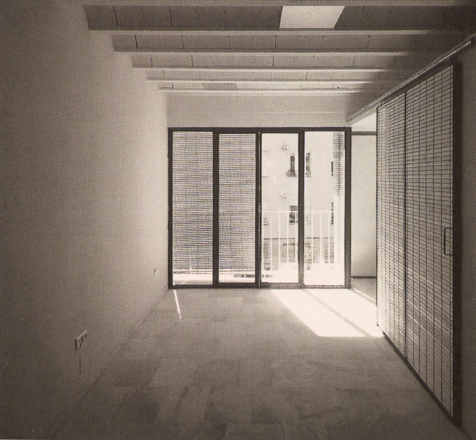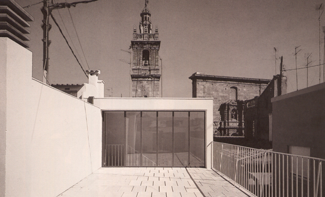 El encargo se inscribe dentro del Plan de Rehabilitación Integral de la Ciudad Histórica de Valencia promovido por la Generalitat Valenciana. En la reducida dimensión del solar de la esquina se plantea una vivienda-estudio por planta con un gran ventanal que relaciona el estar y la cocina con la plaza, y un pequeño hueco en el dormitorio que permite una mirada oblicua hacia la calle. En la vivienda entre medianeras, el estar y la cocina se orientan hacia el patio interior ajardinado y los dormitorios se abren a la vía pública.
