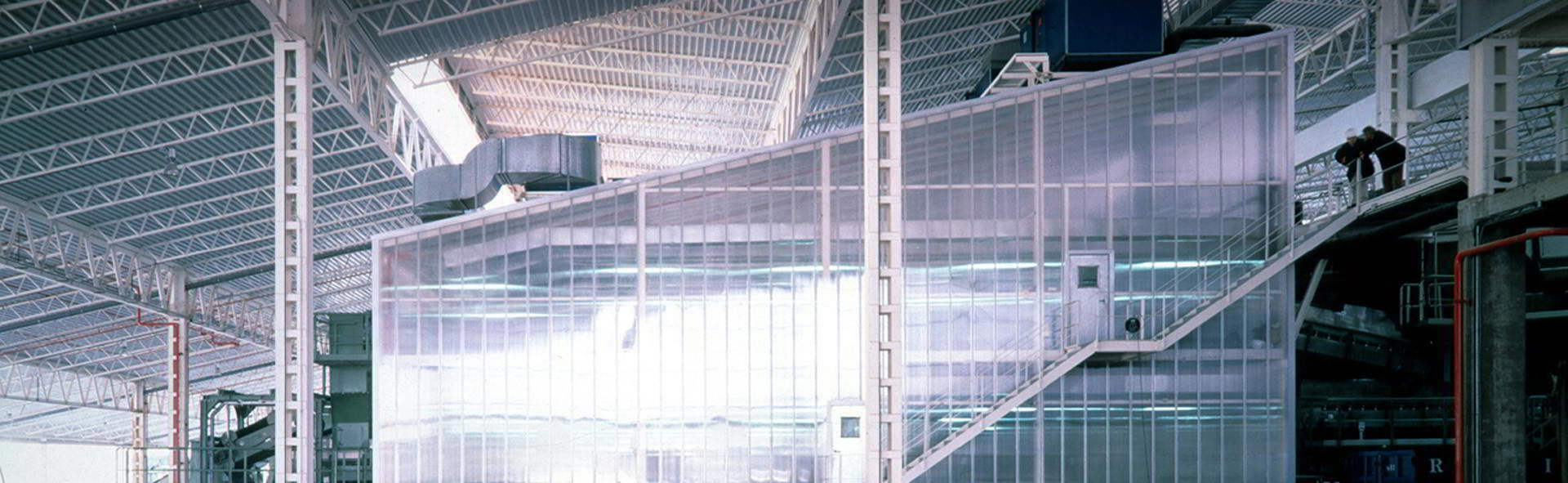Son precisamente estas cualidades las que convirtieron el acero en uno de los materiales predilectos de la arquitectura moderna, hasta el punto de que la ligereza, la industrialización y la facilidad de montaje se instalarían en su misma razón de ser. En su reverso, no obstante, el acero contaba con otra cualidad que pasaría desapercibida hasta que, unos meses después de la toma de la fotografía, la crisis energética de 1973 nos hizo saber que vivimos en un mundo de recursos limitados: se trata de un material de alta conductividad térmica o, lo que es lo mismo, muy poco aislante, algo que limita enormemente su capacidad para negociar el encuentro entre el interior y el exterior de los edificios. Es por ello que, especialmente a partir de ese momento, el acero hizo patente su necesidad de vestirse con otros materiales para responder a las exigencias medioambientales. En 1987, el propio Museo de Arte Contemporáneo se transformaría en el Museo del Traje CIPE para confirmar una necesidad que se manifiesta en los edificios recientes que conforman este itinerario.