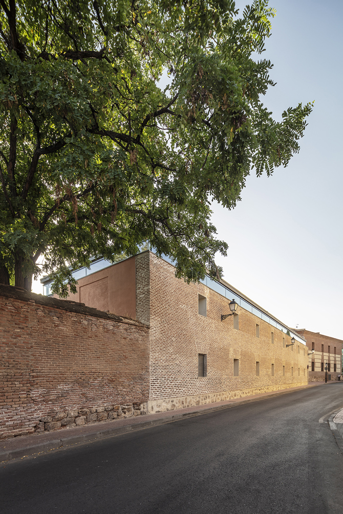 Esta fachada se conserva y rehabilita. La nave se completa con una fachada nueva, ampliando ligeramente su crujía para la adaptación a un nuevo uso, y opuesta a la anterior tanto en posición como en concepto. La nueva fachada genera una continuidad con la anterior a través de la materialidad: el ladrillo. Sin embargo, juega al contraste mediante el uso de este material. Frente al muro de carga, la nueva fachada “flota”.