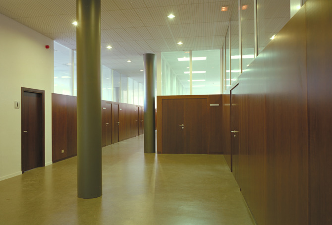 En las restantes zonas de las plantas existentes se ha procurado que la transparencia de los sistemas de compartimentación utilizados dotara a las zonas de paso de un buen nivel de iluminación natural, haciéndose uso, por otra parte, de materiales y tonos acordes con la memoria de la facultad.