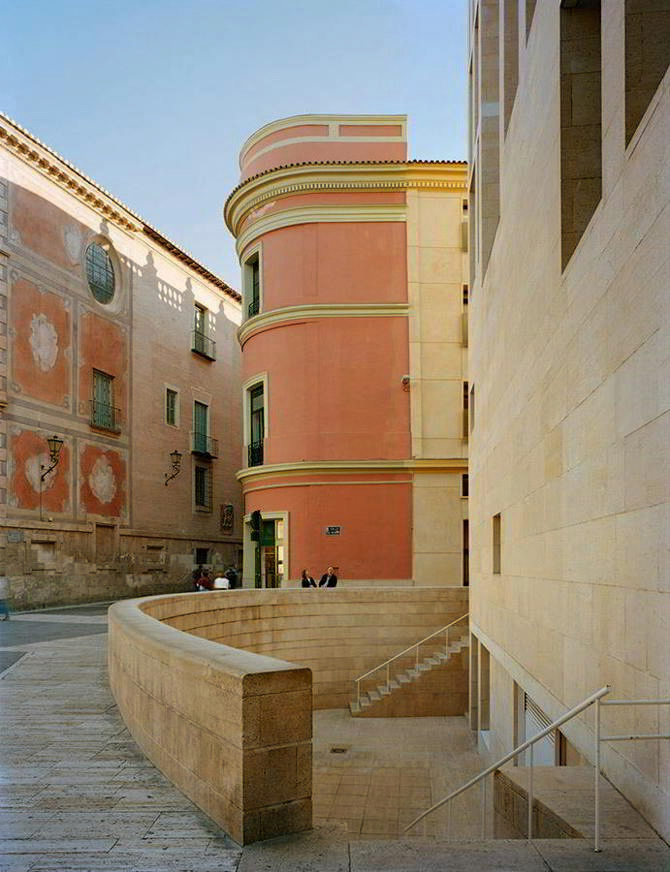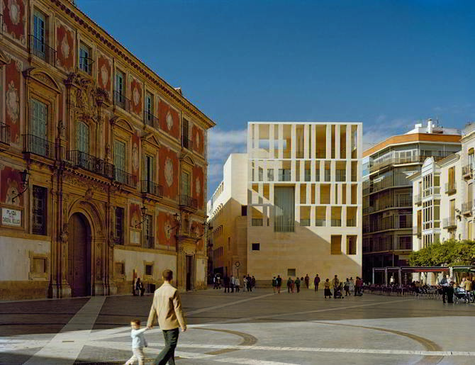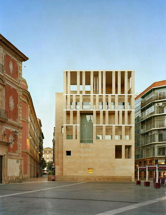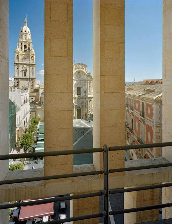 La plaza, así, como un conjunto de edificios singulares –la catedral, el palacio, el Ayuntamiento– que configuran un espacio que no pierde tensión en las viviendas burguesas de principio de siglo XX. El proyecto de Murcia pretende mostrar que el respeto a lo existente no es óbice para la arquitectura en libertad.