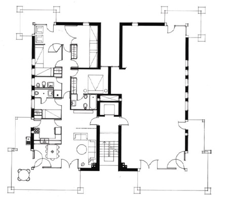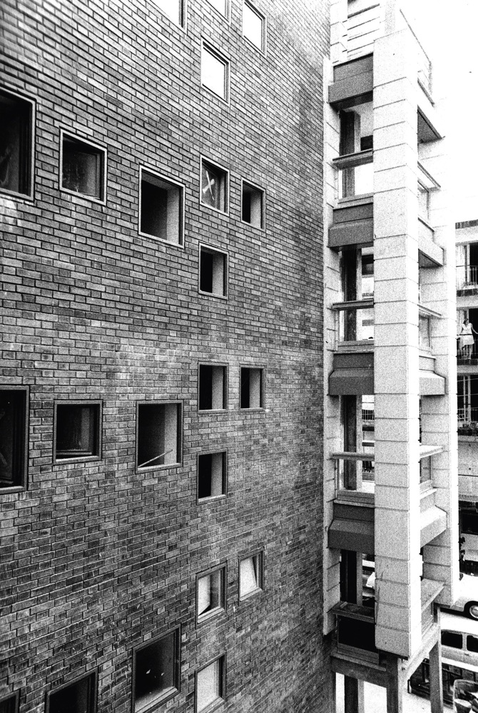 Su estructura de pilares y jácenas de hormigón facilitó la abertura de unos huecos generosos en las cuatro esquinas de la maciza caja de albañilería de manera que se convirtieron en una generosa prolongación del interior. El resto de las dependencias ventilaban y se iluminaban mediante pequeñas ventanas abiertas en el muro. El tratamiento escalonado de las dos plantas superiores facilitó la relación de la obra con las diferentes alturas de los edificios vecinos.