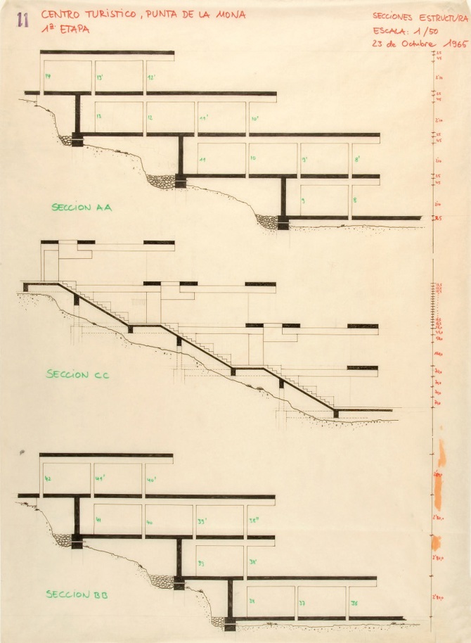 Secciones - Fondo Fernando Higueras, Arxiu Històric del Col·egi d'Arquitectes de Catalunya (COAC), en Desde el Origen Fernando Higueras 1950-2008, vía Ministerio de Transportes, Movilidad y Agenda Urbana (MITMA) -