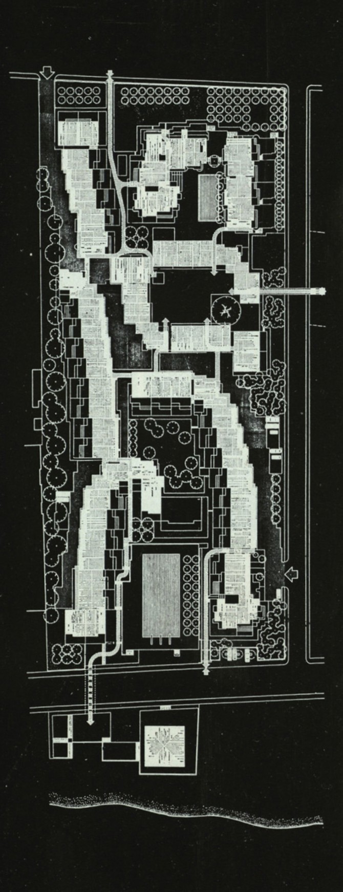 El plan general prevé 306 apartamentos yuxtapuestos de tal manera que cada uno tenga vistas al mar, si esto es posible, o, si no, a la montaña, lo cual lleva a una estructura general de continuidad de espacios semicerrados. La altura de los edificios va creciendo a medida que va aumentando su distancia al mar, evitando con ello un brusco cambio de escala junto a la playa. Hay fundamentalmente tres espacios abiertos en forma de herradura: el mayor constituye un parque orientado hacia la playa, con una gran piscina que conecta con la zona de mar por debajo del paseo marítimo; el central se abre al norte mirando a la zona de deportes y contiene los servicios culturales y comerciales: del sector oeste, parcialmente cerrado por los edificios más altos, mira hacia la montaña y tiene un carácter mucho más urbano, pero también tiene una piscina para mantener el carácter del conjunto.