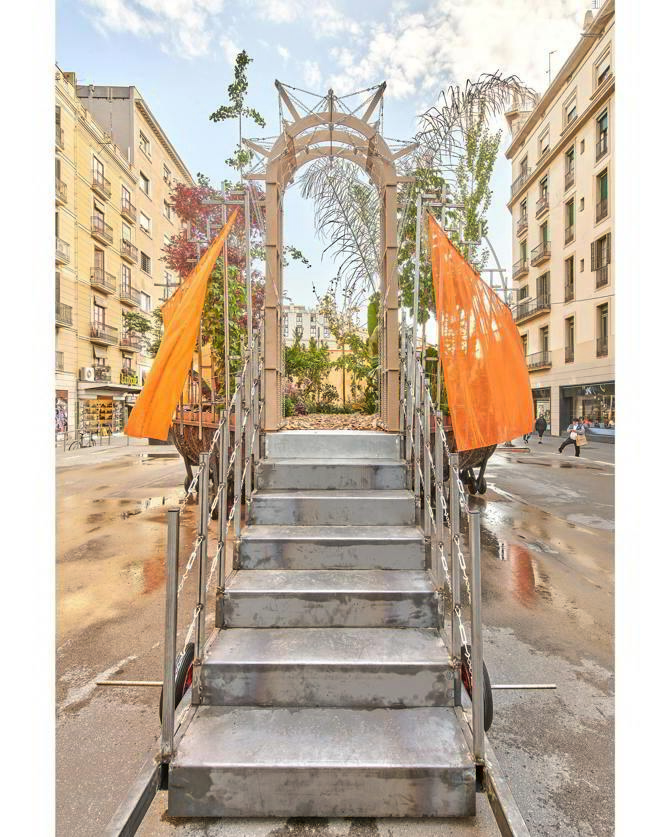 Durante el festival, este artefacto se desplazará por las calles de Barcelona actuando como un proyecto piloto de lo que podría suceder: jardines portátiles que se trasladan a las zonas con mayor concentración de contaminación, nuevos espacios verdes que se ubican temporalmente en áreas densamente pobladas, o aulas abiertas para el conocimiento botánico interespecies. El proyecto se construye desde las posibilidades temporales, materiales y políticas del presente, pero con el objetivo de imaginar escenarios futuros tan necesarios como deseables.