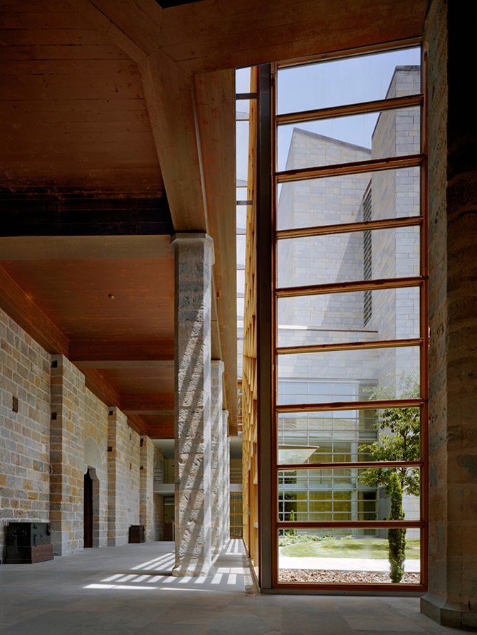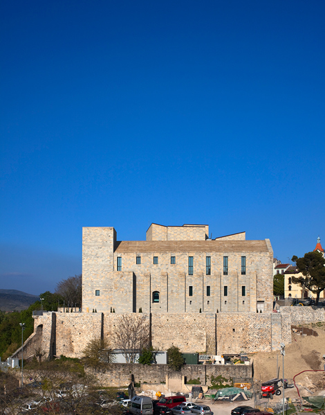 Pero este procedimiento no podía ser extendido a todo el proyecto y las nuevas construcciones aceptan el que así sea haciendo uso de la misma piedra, tratada, sin embargo, con técnicas actuales. El resultado es el rescate para Pamplona de un nuevo Palacio de los Reyes de Navarra que se suma al conjunto de torres y murallas que dibujan el perfil de la ciudad en lo alto de la meseta que domina el Arga.