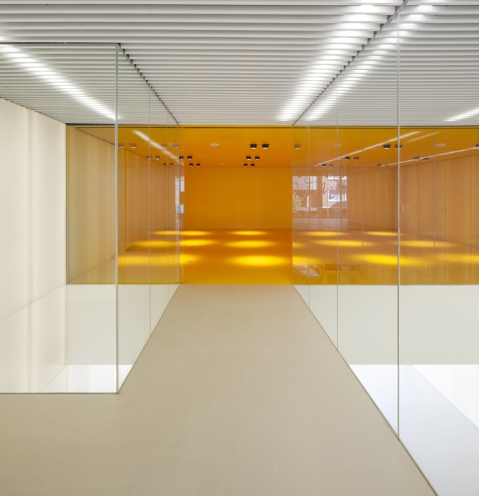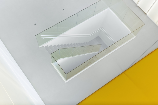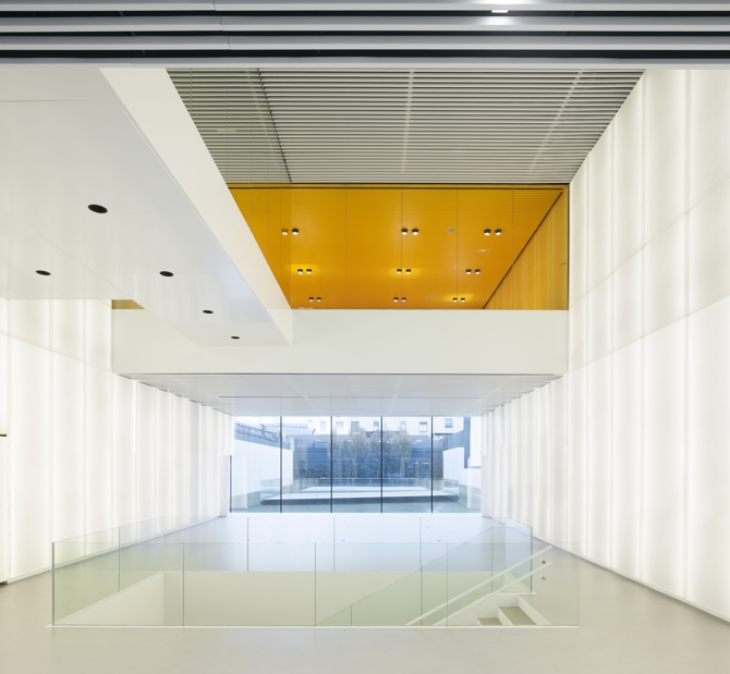 En el interior del edificio se ha apostado por el diseño de dobles alturas y cruces visuales que enriquezcan las relaciones entre los distintos usos existentes en el edificio.