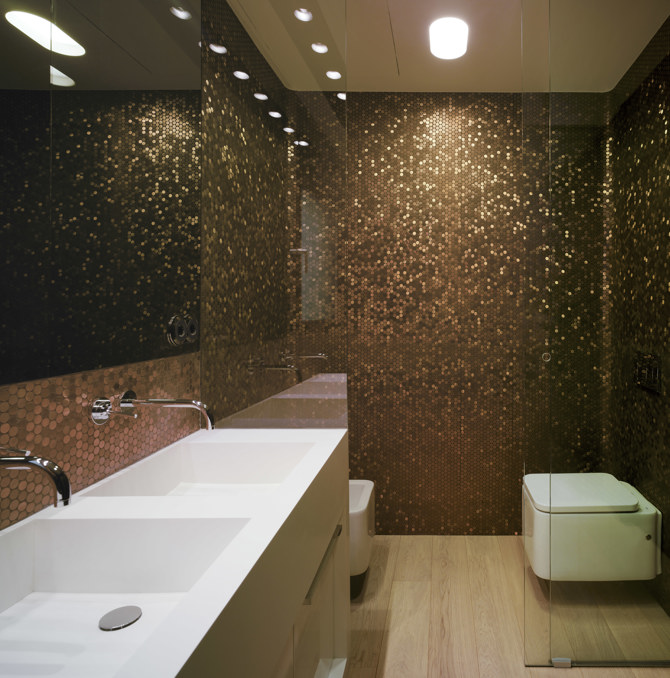 El sistema de iluminación resuelve tres niveles de uso: la iluminación de balizamiento, el uso diario de la casa y el sistema expositivo. Las burbujas incluyen distintas texturas y maderas en su interior, potenciando la idea de su funcionamiento independiente.