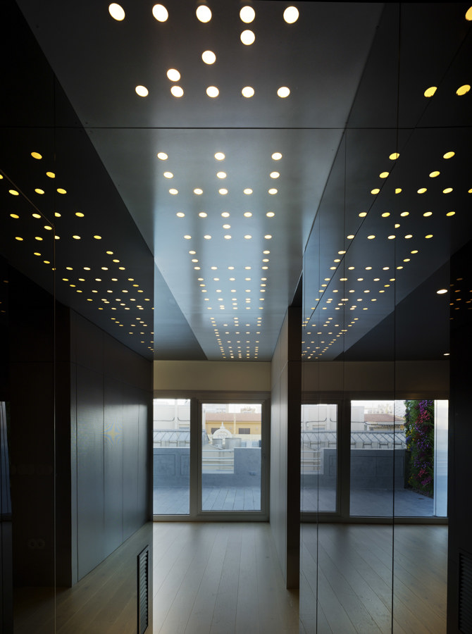 Un sistema expositivo que construye una vivienda. La rehabilitación se ha realizado sobre un ático preexistente afectado por una rígida normativa restrictiva que impedía modificar la ubicación de los muros.