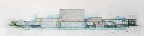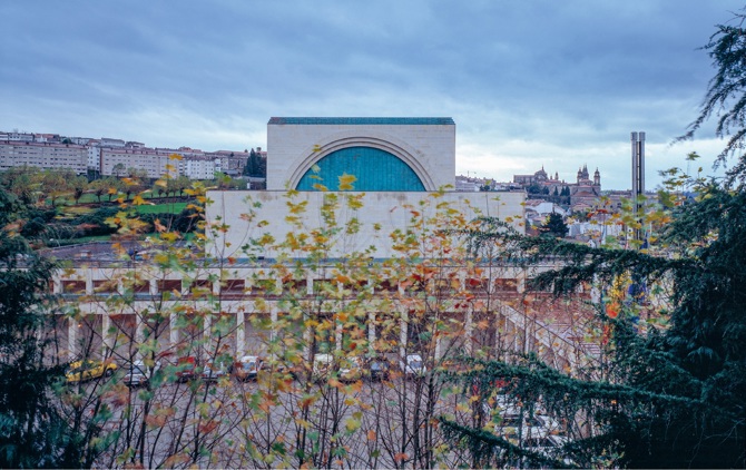 “Aquellos grandes muros de piedra”, era el lema del proyecto en el concurso y expresa la admiración con que en nuestra juventud recorríamos las calles santiaguesas, al pie de aquellos muros conventuales de sillería, oscuros y sombríos, animados con el toque delicado de las galerías acristaladas.