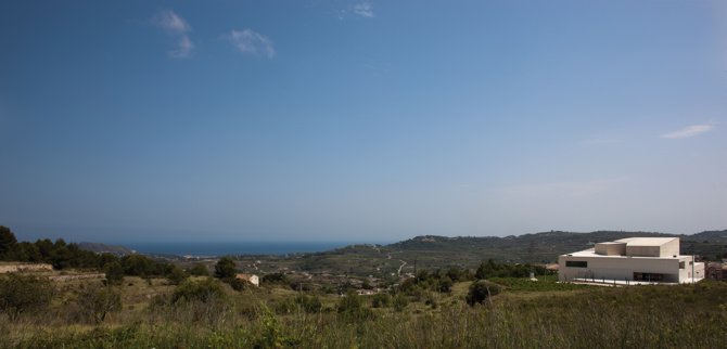 El caserío de Teulada está en la montaña, el de Moraira más hacia abajo, siguiendo un valle de unos cinco kilómetros a orillas del mar Mediterráneo. Una situación administrativa que no se corresponde con la realidad física. El edificio del nuevo auditorio es un puente de unión entre ambas realidades físicas del municipio. Una referencia que permite ver y ser visto desde ambos puntos.