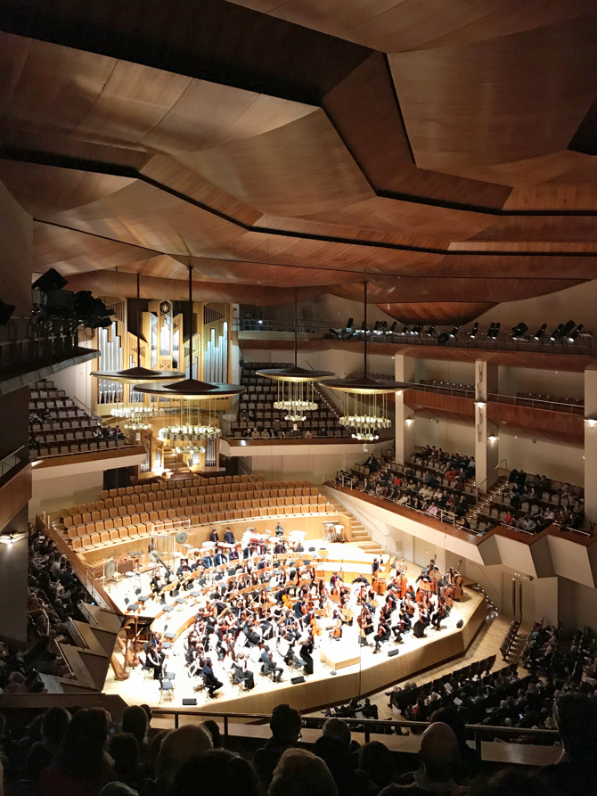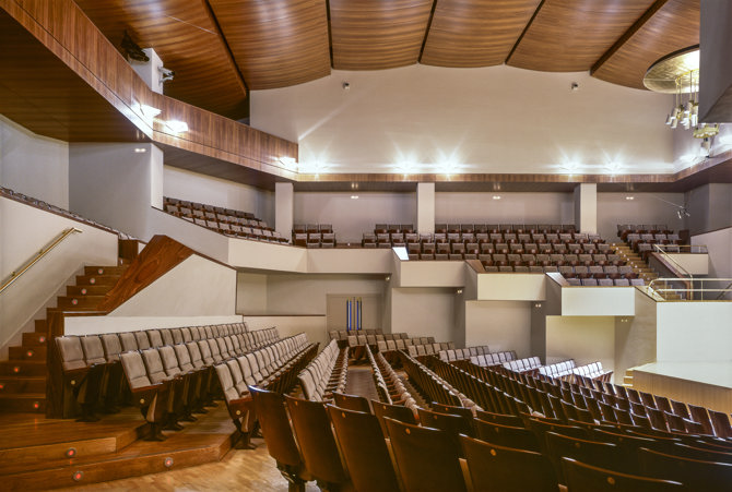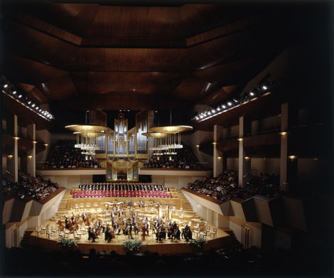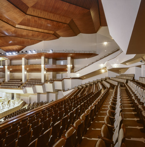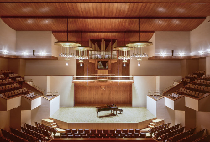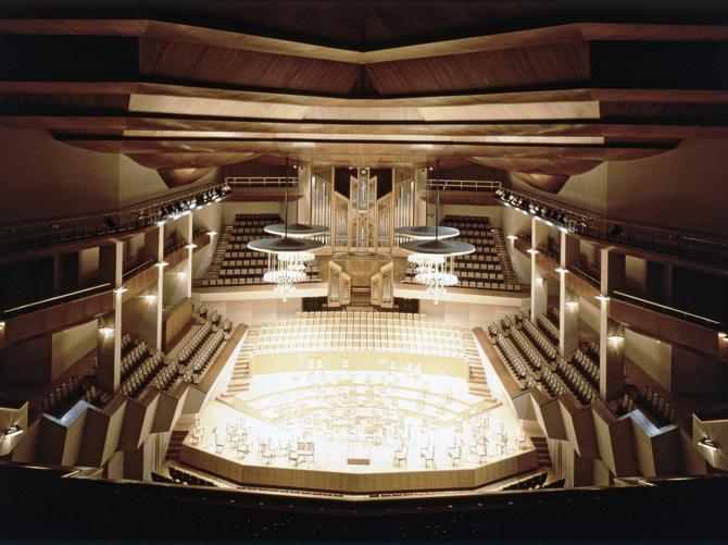 La música y las razones geométricas de la acústica son los principios que conformarán la Sala Sinfónica. La mayoría de los espectadores se sitúa frente a la orquesta, el resto la rodea lateralmente y por detrás en dos pequeñas tribunas a ambos lados del órgano. Los diversos graderíos envuelven el escenario en distintos niveles acercando al espectador a la orquesta, reduciendo la escala del amplio espacio. La Sala de Cámara, con similar geometría y materiales: madera de nogal en techos y paramentos verticales e inclinados pintados de color claro, completa el programa musical.
