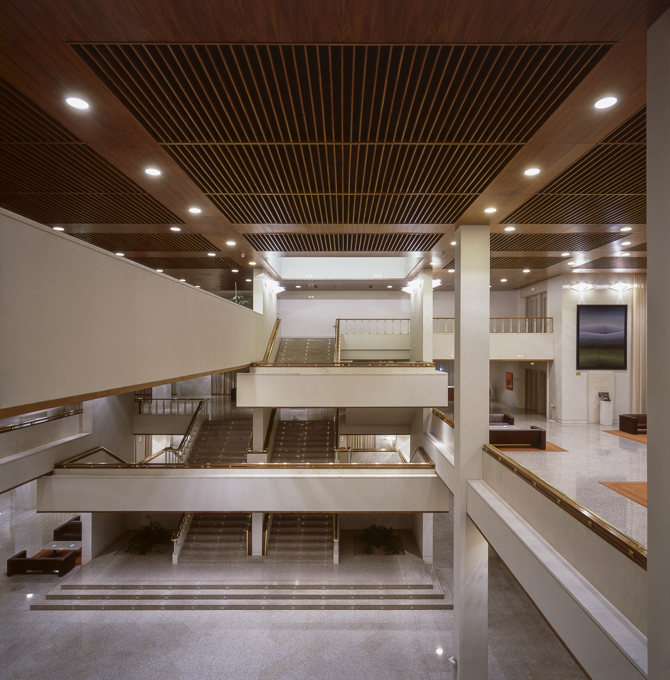 En el riguroso orden de la planta, las salas con geometría propia flotan en el interior del disciplinado contenedor rectangular, permitiendo la continuidad perimetral mediante galerías exteriores entre los dos grandes vestíbulos de los extremos. De tal forma las salas quedan debidamente aisladas del exterior: un instrumento musical dentro de una gran caja.