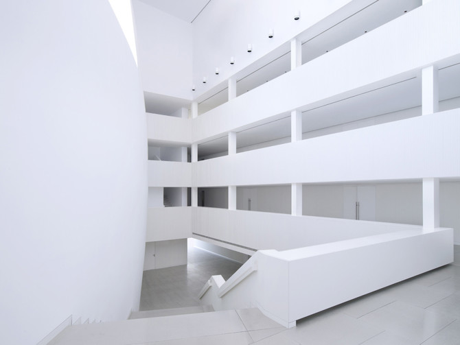Se configura, de este modo, una masa modelada en función de las tensiones de los distintos espacios que la rodean. Hacia la ciudad, alzados limpios, ordenados y pausados que construyen la manzana hacia las calles internas. Hacia el mar, interpretando los espacios y las configuraciones que el paisaje y la geografía proporcionan, amplias superficies cóncavas que tejen relaciones poderosas con el paisaje natural circundante.