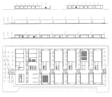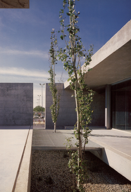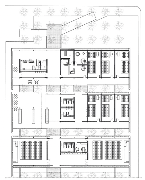 Aislado pues del resto del campus, y rodeado por una vía de intenso tráfico y grandes playas de aparcamiento, el Aulario deberá garantizarse por sí mismo lo que al resto de edificios les viene dado por su situación en la ordenación general del campus: zona verde, espacio exterior, aire, luz y un ambiente propicio para su uso.