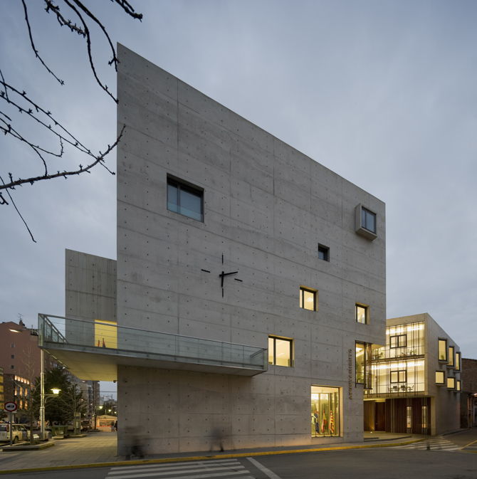 Con el material de hormigón armado no solo aprovechamos su carácter para significar la rotundidad o monumentalidad de los volúmenes contundentes marcando su carácter institucional, sino que aprovechamos la durabilidad del hormigón para ser reconocida y soportar los seguros cambios históricos en su viaje por el tiempo. Con contundencia, integración y funcionalidad, intentamos proyectar un edificio al servicio de los ciudadanos y vinculado al urbanismo a través de la arquitectura.
