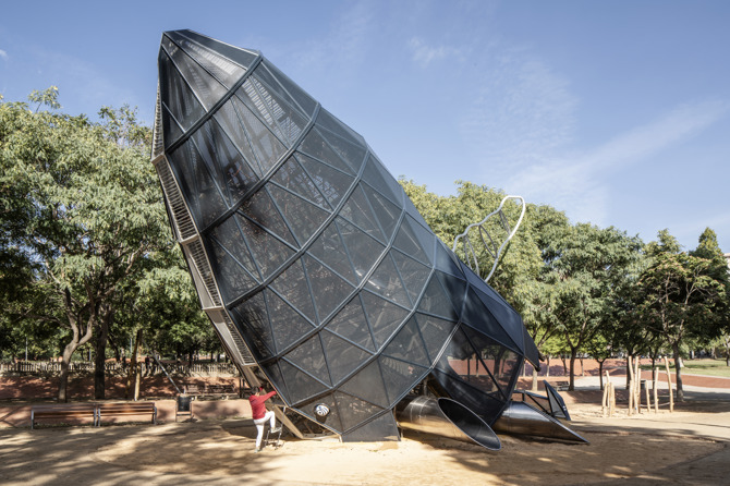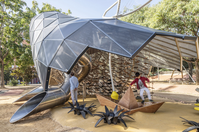 Dentro del marco del Plan de Juego en el espacio público de Barcelona. Horizonte 2030, el estudio Queralt Suau recibió el encargo de diseñar una ballena jugable en el parque de Nou Barris, una idea que nació de un proceso participativo con alumnos de las escuelas del barrio.