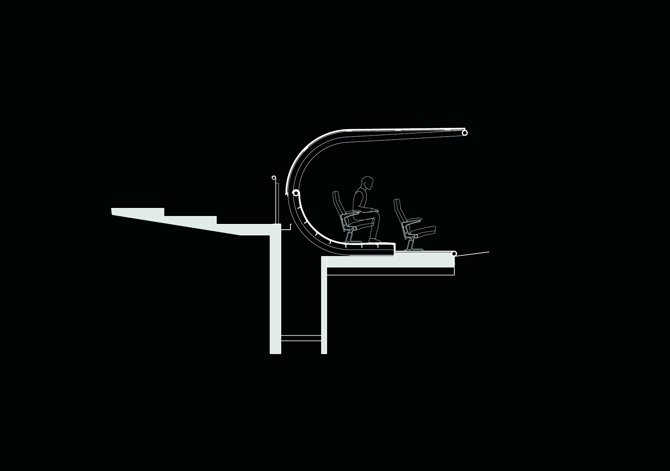 - A escala del espectáculo fuera del campo a través de los medios de comunicación, los nuevos banquillos quieren servir de escenario, de telón de fondo de las actividades a veces teatrales de los actores del gran espectáculo del fútbol. Se tiene especial cuidado en el trazado de un alzado frontal que delimite un objeto finito que define muy claramente una entidad propia del objeto.