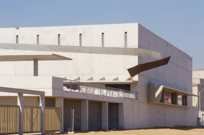 Todo en hormigón visto, tratado para exteriores junto al mar, para que forme parte de la familia de edificios portuarios aislados e industriales de la zona (cada vez más engalanados, más señoriales).
