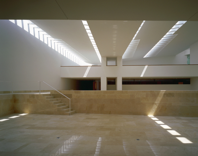 Consiste en una estrategia ambiciosa que desde la resolución independiente de cada edificio ordena el conjunto de modo unitario, aportando cualidades funcionales, sociales y simbólicas que son inabordables desde la fragmentación inicial del programa. Uno de los principales campos de trabajo para la materialización de nuestra propuesta ha sido la labor sobre las cotas y niveles: primero, de comprensión del terreno; segundo, de figuración completa del programa; por último, el trabajo de conjunción de ambos sistemas hasta lograr una integración entre el paisaje natural y el construido.