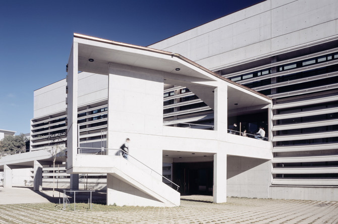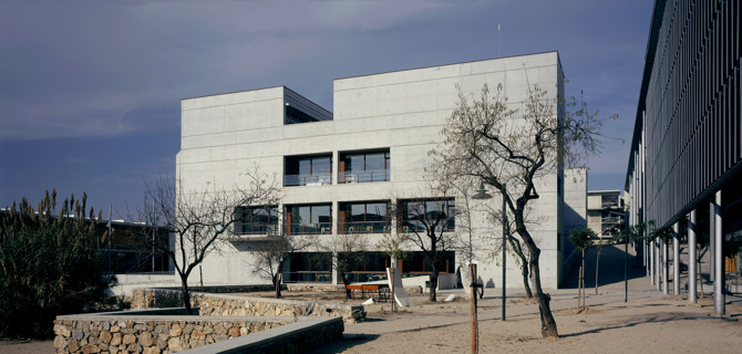 El edificio se ha construido con muros de hormigón visto en el exterior y en la fachada sur unas grandes lamas también de hormigón actúan como persiana, a la vez que sobre sus planos inclinados debían instalarse paneles fotovoltaicos. En el jardín exterior la iluminación es el reflejo sobre placas inclinadas de hormigón blanco de la luz de proyectores empotrados en el pavimento.