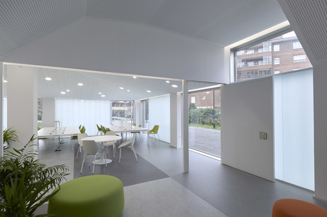 Quizá este sea el motivo por el que el proyecto, en su interior, trate de ofrecer una imagen alienada, distante y dislocada con respecto a la impresión que de su exterior se deduce. Esta desacostumbrada decisión, incubada desde el principio mismo del proyecto, nos hace pensar ahora si no reproduce fielmente, en realidad, uno de los rasgos más comunes presentes en la idea de cobijo: la negación de un exterior ajeno, inquietante e inhóspito.