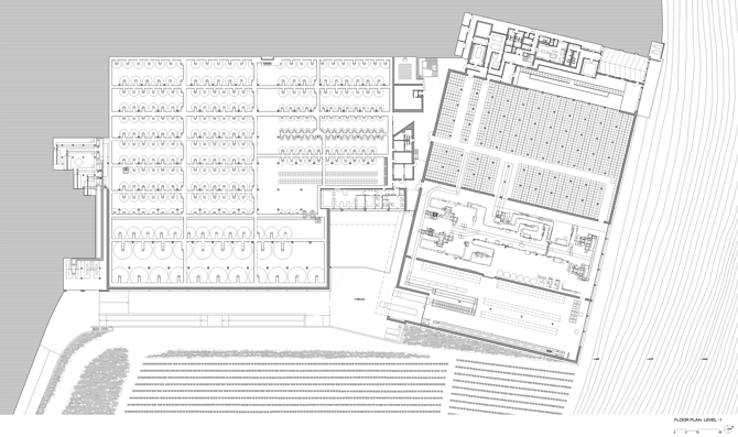 Los edificios de oficinas y visitas se sitúan sobre el viñedo a modo de château mientras la bodega se construye haciéndose parte del cerro, a la manera de una obra de land art, quedando oculta desde el viñedo.