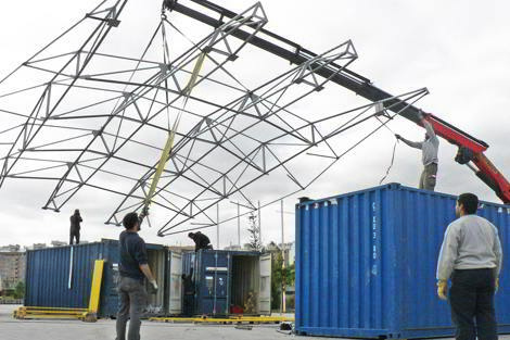 El sistema puede montarse en dos o tres días, dependiendo de la dimensión del equipo, y desmontarse en una jornada, optimizando su uso en eventos efímeros de un par de días —festivales, ferias, congresos, celebraciones vecinales—, pero también como taller de oficios, auditorio o sala de exposiciones temporales en barrios carentes de equipamientos. De este modo, Cacharro 2.0 se plantea no sólo como un artefacto físico, sino como un laboratorio de gestión ciudadana capaz de revitalizar solares vacíos o espacios en transformación mediante la práctica colaborativa.