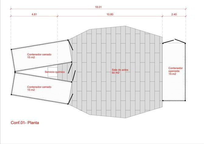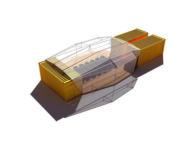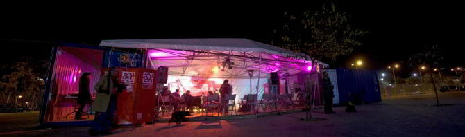 Cacharro 2.0 surge como un dispositivo pluridisciplinar, capaz de adaptarse a distintos contextos y programas. Su estructura, íntegramente elaborada con materiales reciclados, parte de dos contenedores de transporte de segunda mano vinculados mediante una armazón construida con barandillas de carretera reutilizadas y perfiles metálicos recuperados del desmontaje de un antiguo silo cercano. Sobre esta base se dispuso un pavimento de tablero de encofrar y una cubierta ligera de lona plástica, configurando un espacio semicerrado y versátil. El resultado es una infraestructura modular que equilibra prestaciones y economía de medios, ofreciendo superficie cubierta, almacenamiento y autonomía estructural sin necesidad de anclajes.