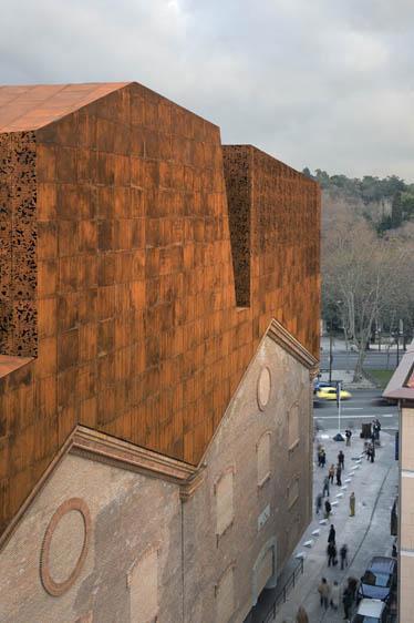 CaixaForum se ha concebido como una suerte de imán urbano que atrae no solo a los amantes del arte, sino a todos los madrileños y a quienes visitan la ciudad. Además del programa cultural que va a ofrecer la institución, ese magnetismo lo provoca el propio edificio, cuya poderosa masa se eleva sobre el plano del suelo en aparente desafío a las leyes de la gravedad y con el efecto real de atraer al público hacia su interior.