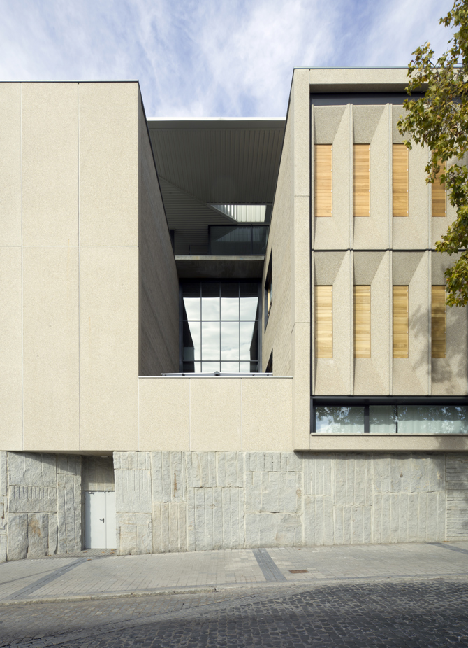 Estos volúmenes, en cierto modo grandes cofres de madera, están separados entre sí por espacios de gran altura iluminados por luz cenital, que reafirman su independencia formal y su importancia funcional. La autonomía volumétrica se fortalece con el espacio que discurre bajo el salón de actos sobre el que este parece levitar. A este espacio se accede desde el ágora de la 1.ª fase, y se remata el recorrido bajo el salón de actos con una gran escalinata que nos lleva al salón de grados, el cual es un espacio de gran altura, de techo en forma de artesa invertida, por el que resbala la luz cenital, reafirmando la importancia de uno de los grandes espacios del edificio. Los bloques de aulas y despachos están iluminados y separados entre sí por patios ajardinados.