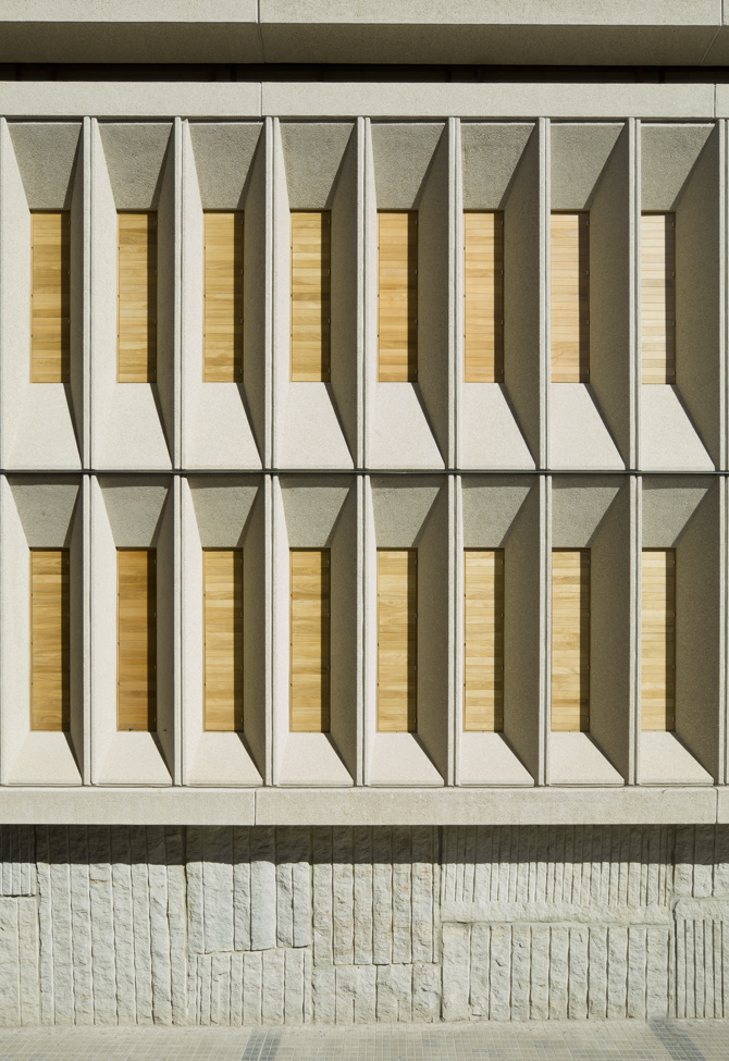 Las fachadas tienen un carácter muy diferente hacia las calles o hacia los patios ajardinados. Hacia estos últimos adquieren un carácter más doméstico, con un alzado de ventanas y un color neutro gris oscuro. Hacia los espacios urbanos aportan un carácter más abstracto, marcando un ritmo repetitivo y vertical, que continúa de forma diferente al de la 1.ª fase. Están construidas de hormigón prefabricado, pero aquí se evita su color gris típico al sacar los tonos más cálidos del árido.