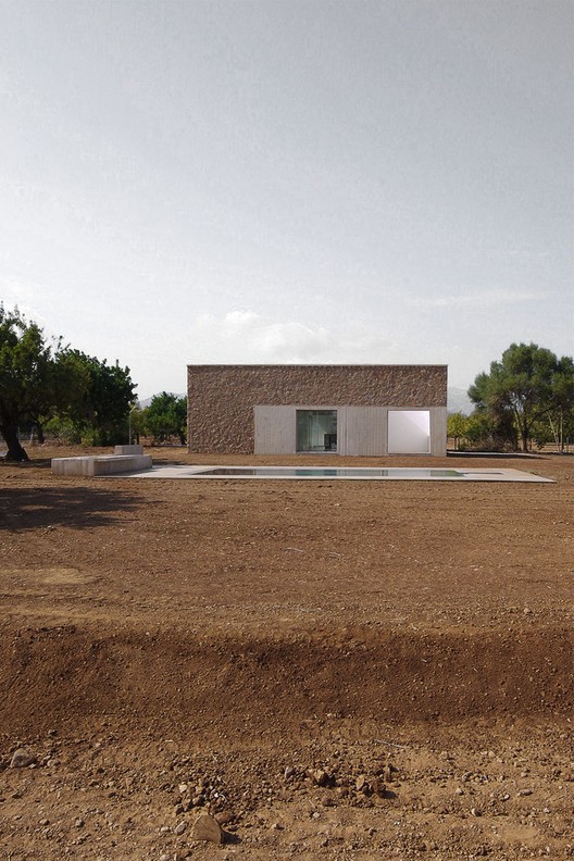 La propuesta realiza dos operaciones principales: La primera consiste en ampliar este recinto hasta que tenga, aproximadamente, proporciones cuadradas. La segunda consiste en delimitar un espacio cubierto dentro de este recinto. Así la casa es capaz de abrazar algunos trozos de espacio exterior. Así el espacio exterior se domestica, se acota, se delimita.