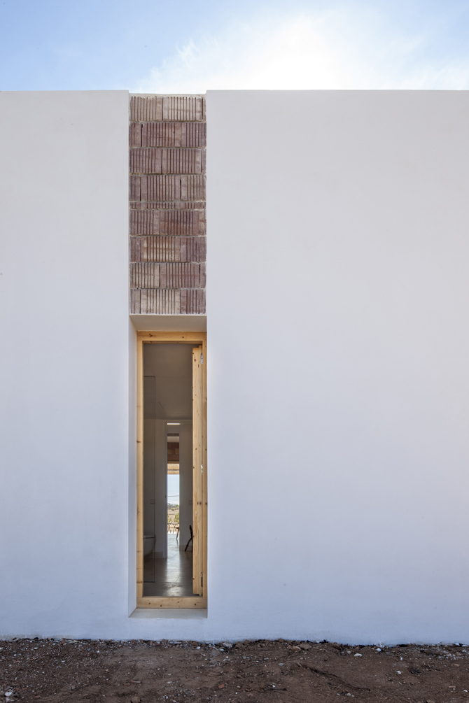 La sencillez del programa se refleja en la planta mediante tres franjas que van desde la parte más pública orientada al sur con el acceso y las mejores visuales desde el porche ligero, hasta la zona de noche en la parte norte, donde los dormitorios se abren hacia levante y poniente. En la franja central queda un espacio diáfano de relación, cocina y comedor.