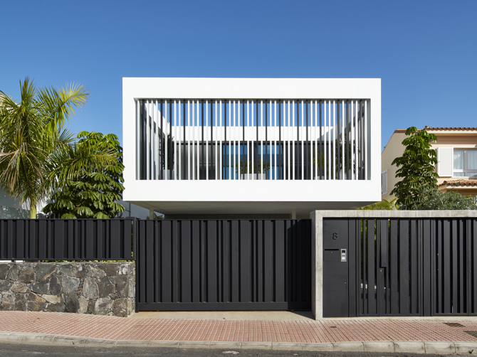 Habitar la ciudad racionalista. La Casa Fortuny, de Eva Llorca, reinterpreta los valores racionalistas -volumen en lugar de masa-, propios de la arquitectura domestica del barrio de Ciudad Jardín, la joya racionalista de la ciudad de Las Palmas. Crea un volumen flotante cerrado por piezas repetitivas de aluminio, que cierra el aire y el volumen a modo de patio de fachada para ocultarse de las vistas indeseadas de la calle. Pero a su vez es abierto, permitiendo la circulación de aire y sol tamizado.
