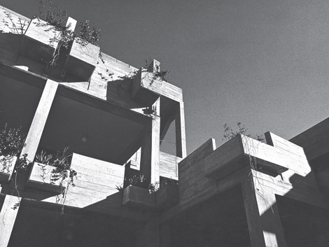 Edificio autónomo dispuesto como un acueducto sobre pilotes.