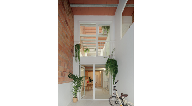 La madre habita los espacios en planta baja y la hija las plantas superiores. La primera dispondrá de acceso directo a la calle y el patio interior. La hija dispone de un programa de cocina, estar, comedor o habitación en un mismo espacio y una sala polivalente en la planta superior.