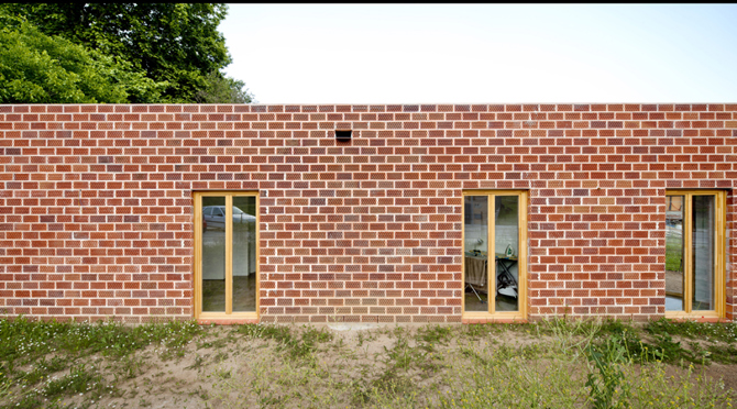 La primera decisión fue no hacer ningún gesto respecto al solar, renunciamos a concentrar espacio exterior en alguna de las fachadas, puesto que esta estrategia pasaba necesariamente por una vivienda de dos plantas, y entendíamos que para lograr los objetivos constructivos y económicos hacía falta sólo planta baja... esta renuncia volumétrica implicaba una renuncia programática: no habría garaje, no habría vestíbulo y no habría más que un baño.