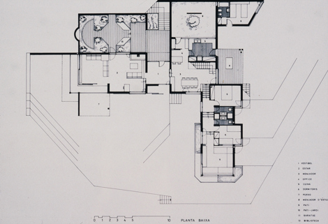 Primera obra del arquitecto Victor Rahola resultado de un encargo familiar de una vivienda unifamiliar en la Costa Brava. La orografía característica de este litoral mediterráneo es uno de los mayores condicionantes del proyecto dado su carácter rocoso y escarpado. El arquitecto lo resuelve insertando la vivienda entre rocas y vegetación arbolada —encinas y olivos— dotando de cierta privacidad a la vivienda en la que destacan un conjunto de volúmenes cúbicos característicos de la modernidad mediterránea, adaptándose a la pendiente existente.