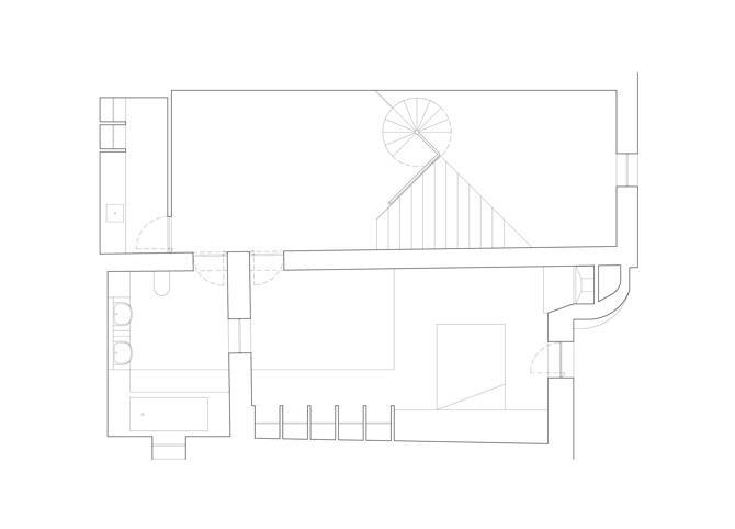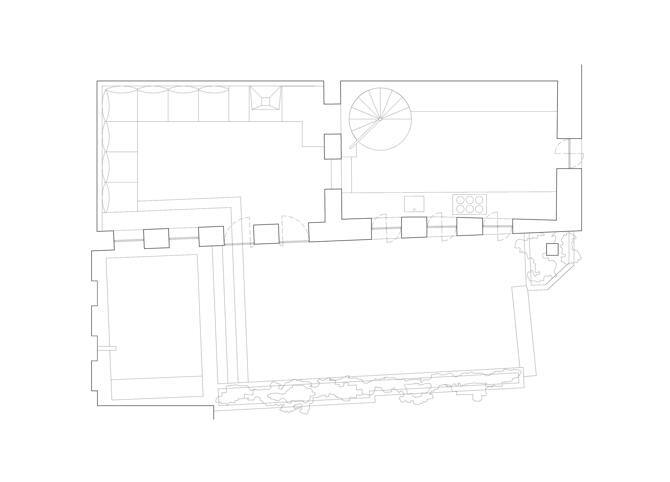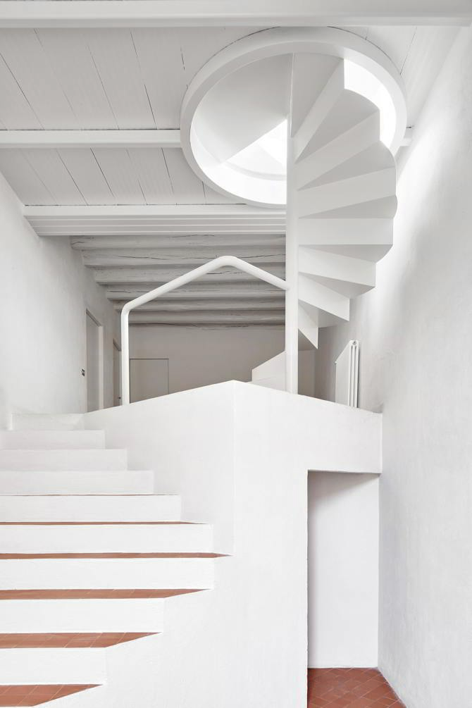 Así, el proyecto se va desarrollando como una celebración del ascenso, desde el espacio en doble altura del acceso, hacia el cielo de la terraza y la piscina, en el punto más alto. La escalinata inicial se transforma en una escalera de caracol tras pasar por la primera planta. Al llegar a la segunda, se descubren la cocina, la zona de estar, la terraza y la piscina, que se conciben como un gran todo.