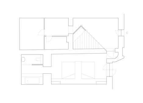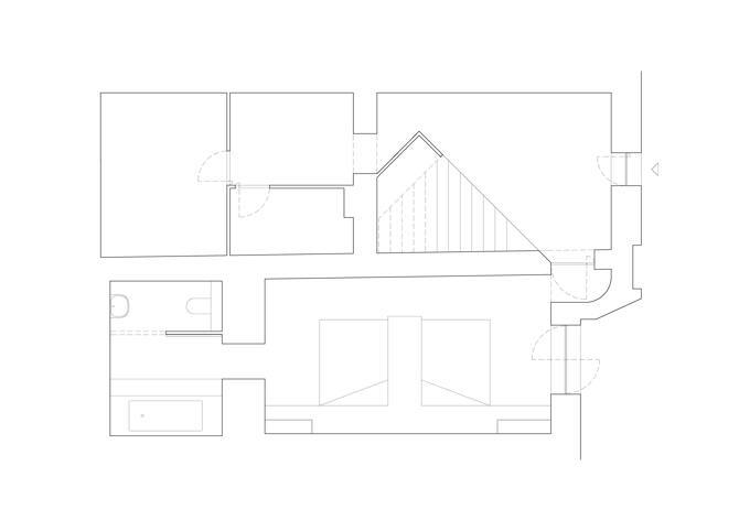 La fachada principal también participa de este lenguaje de huecos, con una ventana que forma una gran llaga vertical que muestra los espacios que se apilan en el interior de la vivienda en este camino ascendente.